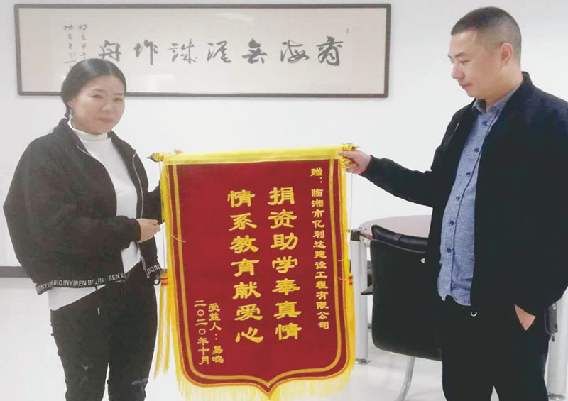2022年2月,2017届受助学生赠送亿利达公司锦旗。